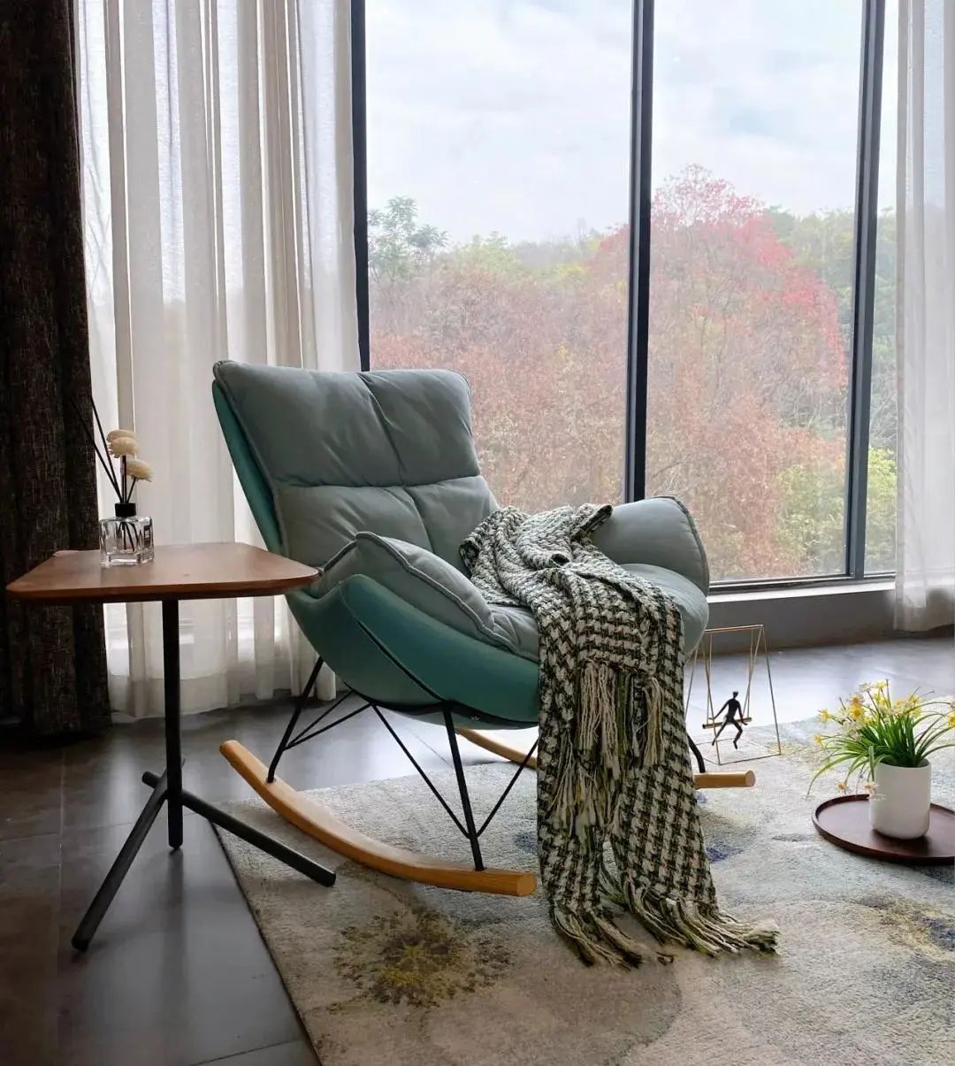 同时也可以放置摇椅,在阳光不强烈的时候,可以在阳台读书看报,别有一番风味雅致。