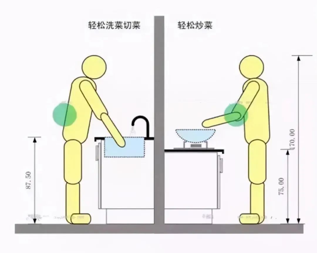 10、厨房的动线:拿(冰箱)---放---洗---切---炒---摆;台面一定要按照这个设计。