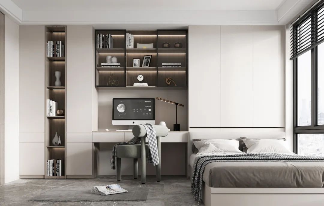 01.能够节省空间,把空间的高度方向,也就是立面的空间充分利用起来,儿童房省出来的其他区域可以满足更多其他的功能,比如游戏玩耍区、学习区等等,如果是一个小孩居住的话,可以上床下桌、上床下柜,或者上床下活动区等等,布置可以有非常多的形式。