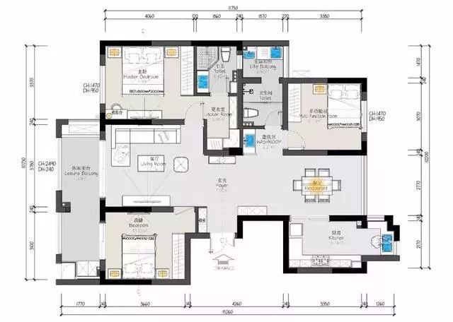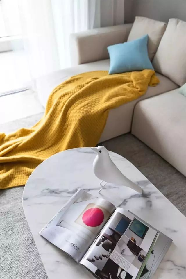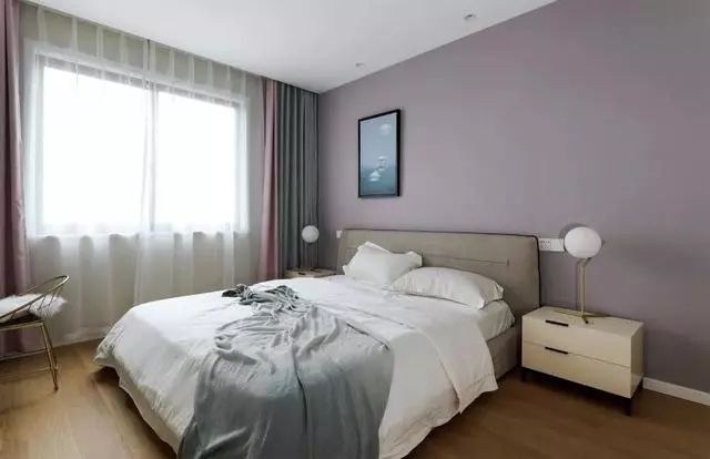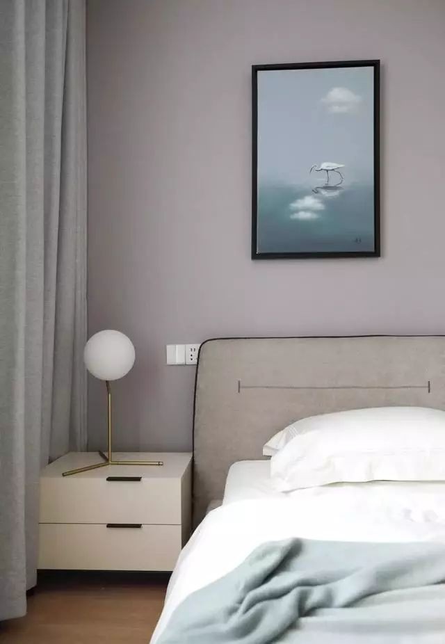 整体以低饱和度的浅灰色为主,通过北欧舒适的家居布置,把空间营造成一个干净自然的舒适空间感。 ▲玄关的鞋柜底部与中间都留了空层,并装上灯带照明,鞋柜连贯着电视墙的隐形门,整体设计和谐统一。 ▲针对大门的这面墙,布置一张端景台,灰白木三色的交织,摆上活力端庄的装饰画与花瓶,使得进门后的空间视线更加优雅自然。▲客厅空间在灰色调的墙面基础,整体现代简约的家居布置,呈现出一个轻松自然的氛围感。▲沙发墙的抽象几何挂画、还有时钟,让灰色调的背景墙显得更加艺术气质;米白色布艺沙发,搭配上鲜艳的黄色懒人椅与抱枕软装,在这个简约的空间里显得格外的抢眼,点亮了空间的活泼感。 ▲大理石质感的茶几,摆上白鸽、杂志,使得原本就简约的空间更加优雅洁净。▲现代优雅的餐桌椅搭配,在金属架基础,白色餐桌台面+灰白粉的餐椅,餐桌上摆着蓝色花瓶、再布置鲜艳的插花,带来一个安静与激情的舒适气氛。▲餐厅天花上装了一组独特的圆形组合吸顶灯,在优雅的外观设计下,还使得空间更加温馨有层次感。 ▲华丽精致的细节布置,令人轻松舒适。 ▲厨房在黑框玻璃推门后,白色小方砖墙面+浅木色橱柜,整体布置简约而文艺舒适。 ▲卧室在紫灰色的墙面,搭配上灰粉配的窗帘、灰白配的床单,布置出一种高冷简约的浪漫。▲现代简雅的床头柜与梳妆台布置,也显得精致华丽而又档次。 ▲次卧灰色背景墙挂上黑白配的小方幅画,舒适优雅的布艺靠背床、干净简洁的床铺,也为主人提供了一个舒适轻松的睡眠空间。 ▲鲜花使得空间充斥着新鲜与浪漫。▲主人的小衣帽间,在衣柜的拐角空间以开放的设计,使得这个空间利用有着更多的可能性▲公卫的洗手盆设置在过道区域,以矮墙为隔断,墙面在灰白粉色的六边砖搭配下,挂上一面圆形的黑框镜子,布置出一种北欧范的舒适体验。▲卫生间在哑灰色的空间基础,搭配黑色淋浴房,再布置上木色洗手盆,呈现出一种冷暖交融的对比感。 ▲封闭的阳台,装了电动晾衣架,侧边还做了一个收纳柜,简洁的空间,实用而又轻松。