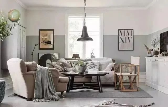 因为比较深重的颜色会给人头重脚轻的感觉,让空间变得沉重压抑,所以在选择颜色时,横向拼接的上半部分多用白色或者浅色系,不仅是因为浅色对整体家居风格的包容性会更强,而且与顶面相接,也可以在视觉上扩展空间,让房间显得更有空间感、更敞亮。