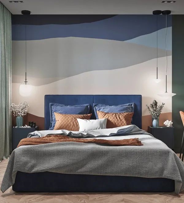 随着家装设计的不断发展,现在墙面装修早已不局限于同一种色彩,多种色彩在墙面交替出现,不仅可以利用深浅色差,创作出丰富多样的空间层次,还能巧妙地利用色彩拼接,作为空间区域的划分。