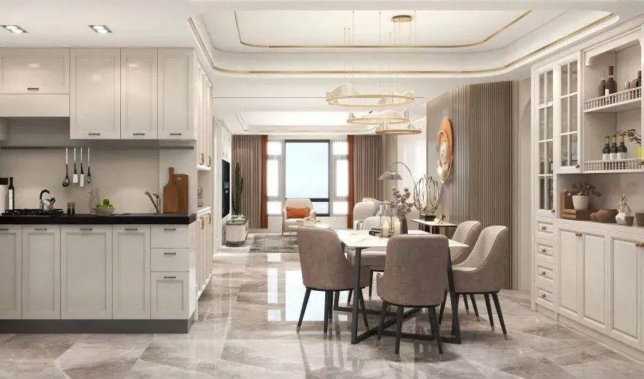 现代轻奢是现代风格的提升,它能改善刚需类设计风格中的不足,通过精美的配饰、高级的材质、严谨的细节,将设计延伸到业主的生活中。