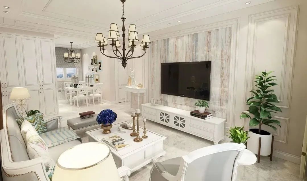 美式风格色彩相对其他传统风格更加丰富,家具选择更有包容性,多为古典弯腿式,家具、门、窗漆成白色,擅用各种花饰、丰富的木线变化等。居室色彩主调为白色,空间环境多表现出富丽浪漫的气氛。