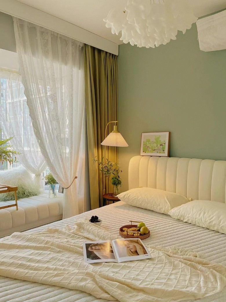 客餐一体的横厅装修,客厅、餐厅、榻榻米、主卧刷的都是奶油漆,次卧刷的绿漆.整体风格清爽又耐看~