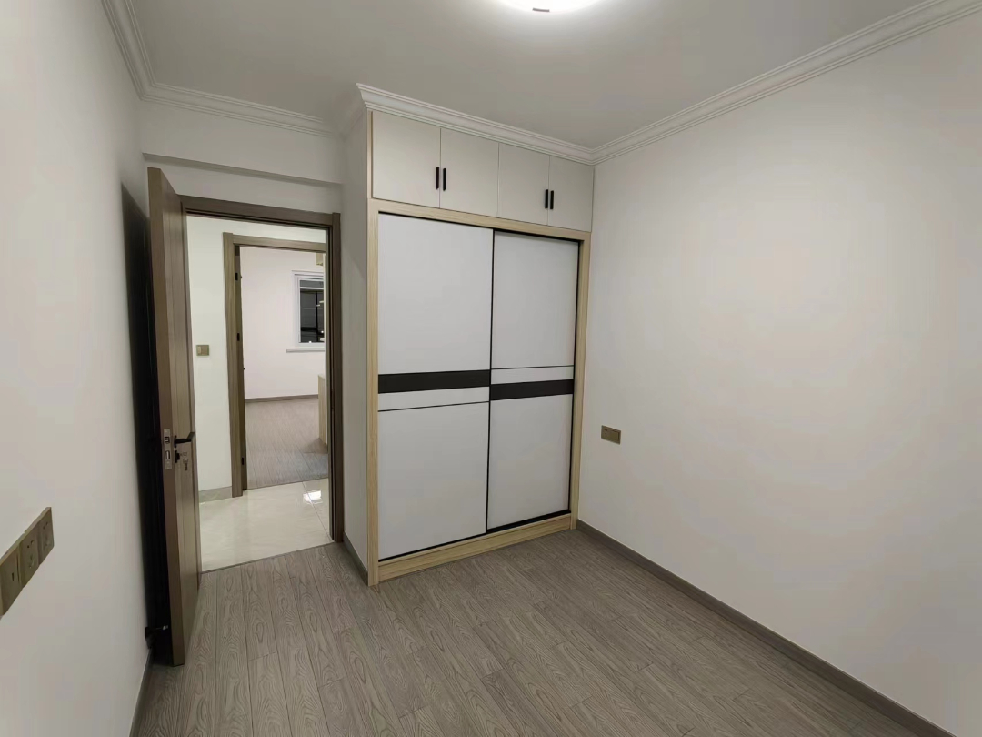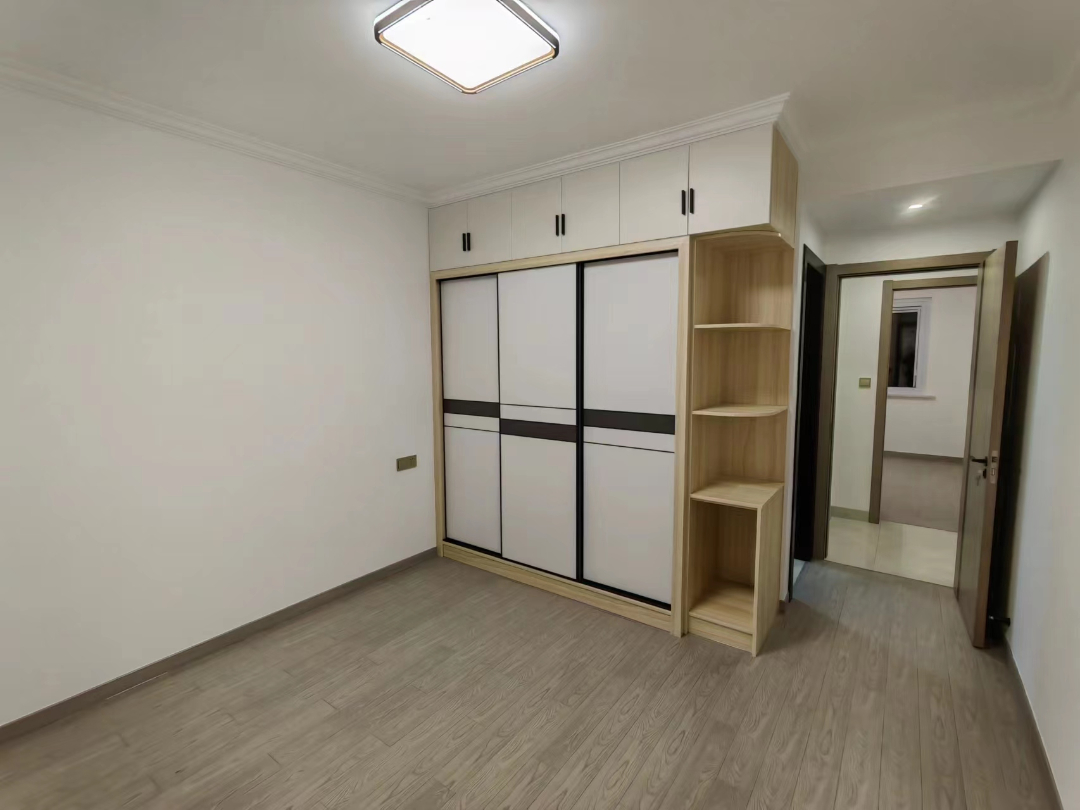 房间铺上了舒适感更强的木地板,烟灰色的地板,颜值也是很高的哦。房间都设计了到顶的衣柜,来满足日常所需。当然啦,根据每间房成员的特点,衣柜的格局也做了不一样的设计,非常贴心。