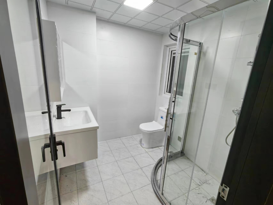 主卫和客卫的设计基本一致,白色的瓷砖让洗手间看起来也更加洁净。镜面柜的选择,让洗手间的收纳能力也提高了不少。客卫没有做干湿分离,没有移门的阻隔,后期洗洗大东西会更方便。而主卫由于面积问题,设计了圆角淋浴区,干湿分离,便于打扫。
