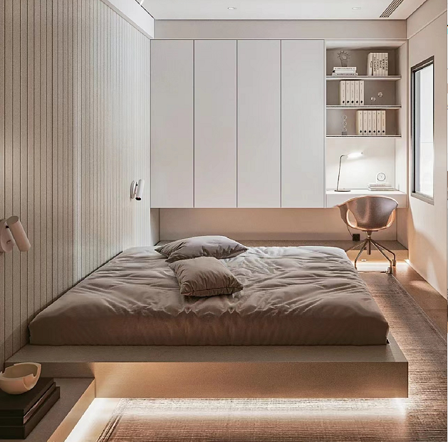 将小卧室打造成榻榻米,已经成为了近些年用户比较喜欢的卧室设计。它功能繁多,造型多变,大大提高空间利用率,还拥有强大储物功能,轻而易举地达到“一房多用”的效果。