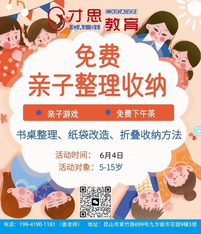 亲子收纳课程,我们才思教育将在6月4日下午13点30左右开始上课,宝妈们可以带着自家的宝贝来体验一下啊。