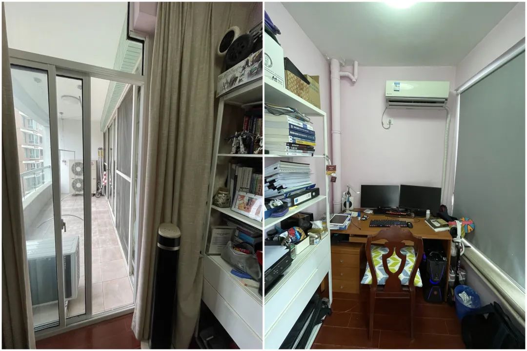 主卧利用飘窗抬高,做了一个L型的台面,兼具书桌及梳妆台功能。