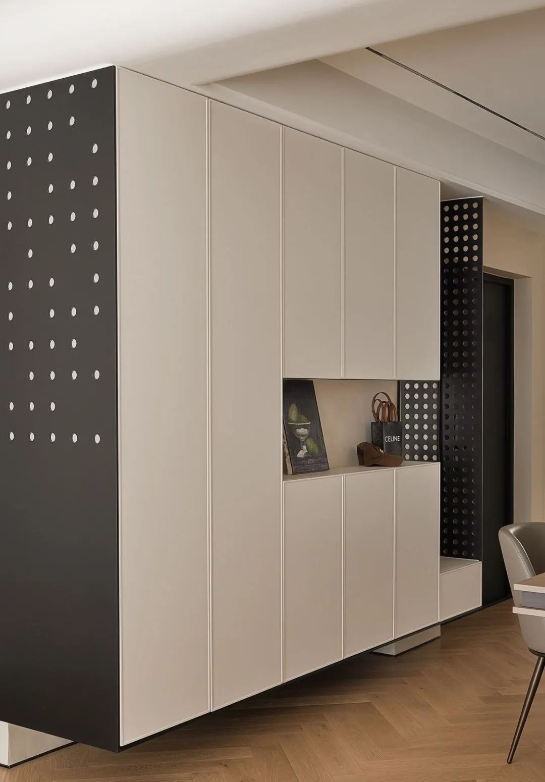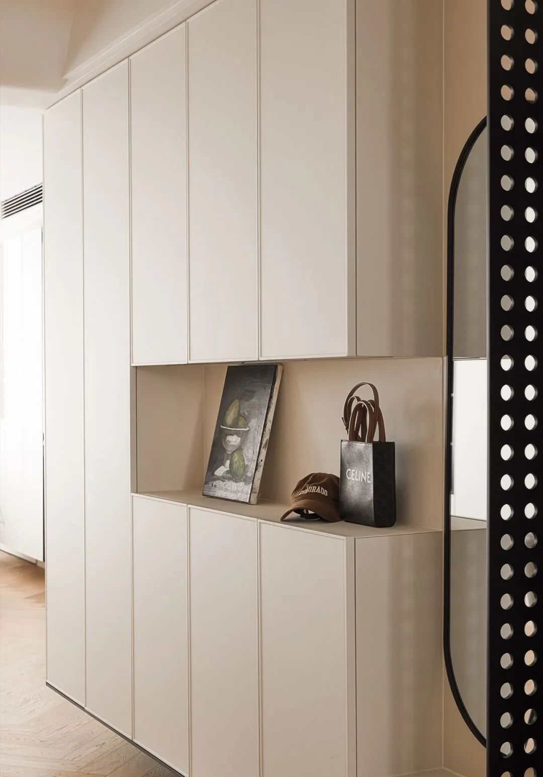 庞大的收纳体量极易使空间变得厚重、逼仄,却在设计师的手里无声隐入空间背景板,简洁又不失细节把握,是让屋子经久耐看的关键。