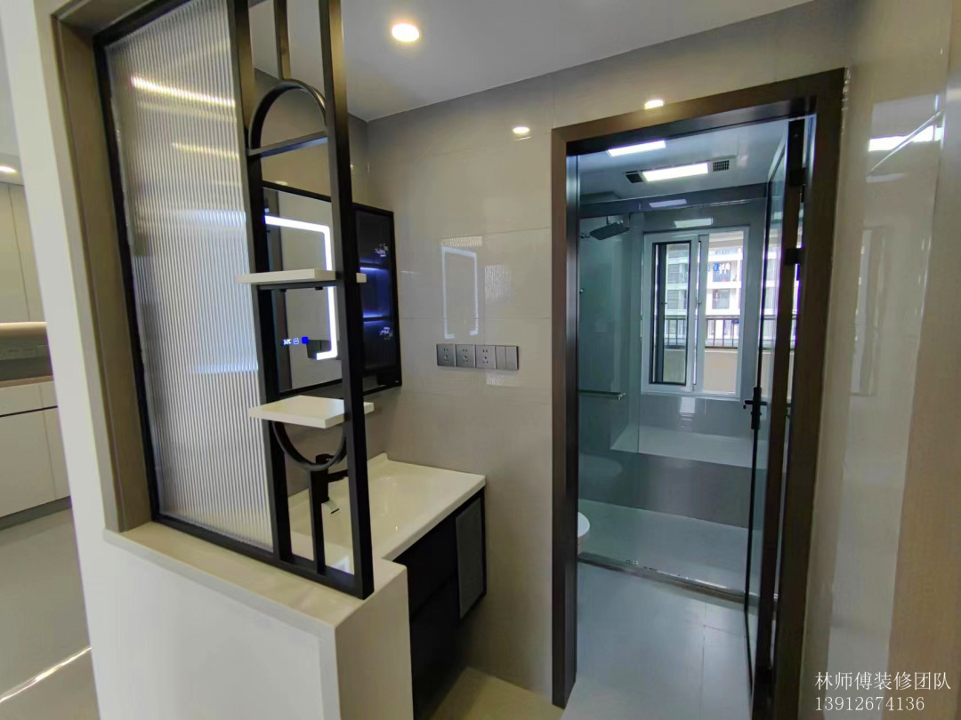 家里两个洗手间,客卫实现了三分离,将洗手池外移,使用起来更方便。而且外移的洗手池用玻璃隔断,保证采光。主卧也进行了干湿分离,方便后期清洁打扫,镜面柜收纳能力也超棒!