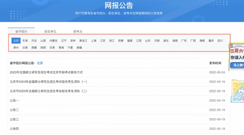 各省的网报公告一般在9月中下旬集中发布,届时会公布网报条件、现场确认时间、报名流程、考点设置等信息。这些内容,对于应届生、无工作往届生、有社保的往届生等不同类型的考生,都是有不同要求的。