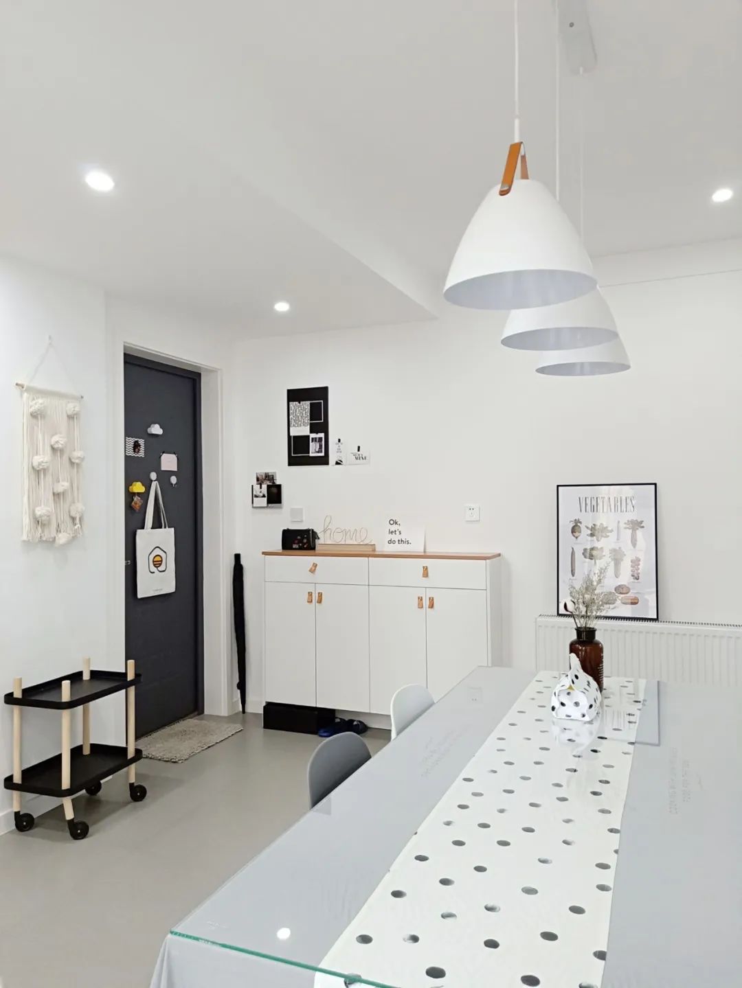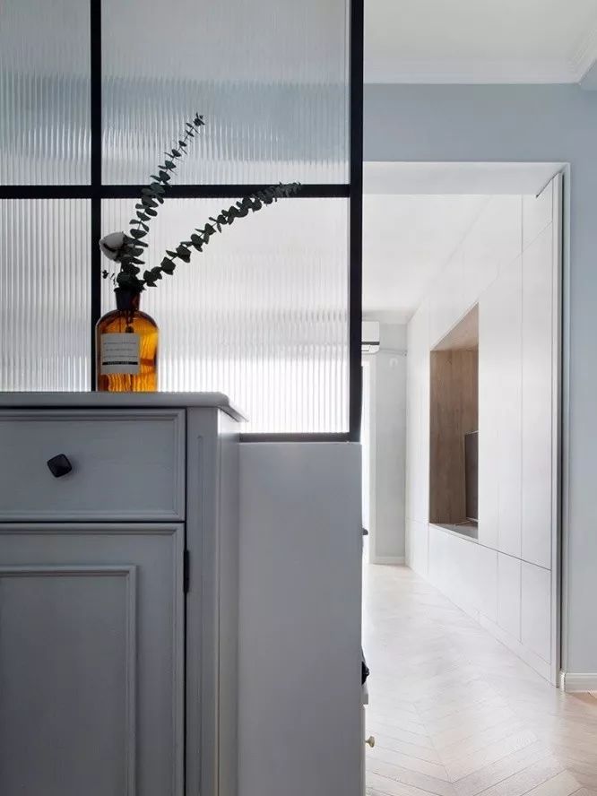 进门长走廊的户型也很常见,可以利用靠墙一侧定制玄关柜,实现玄关功能,美观大方又不占地方。