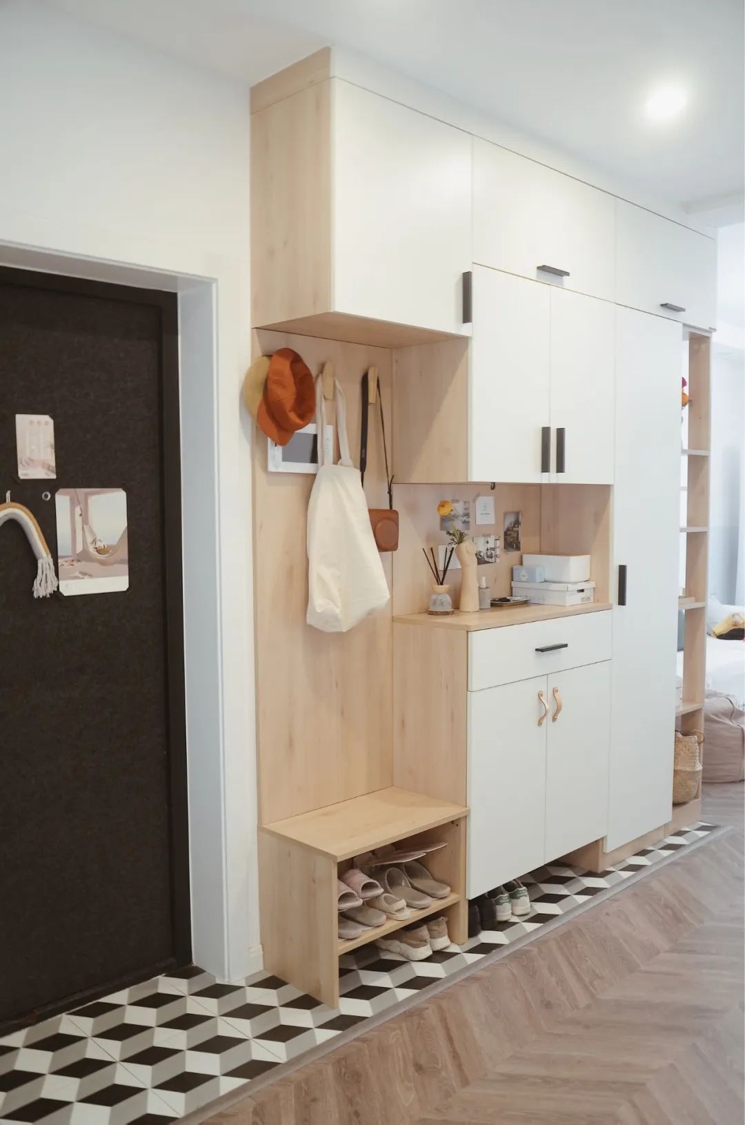 入户无玄关,进门的鞋子无处收纳,钥匙等小物件也没地方放置,那么这个问题如何解决呢?