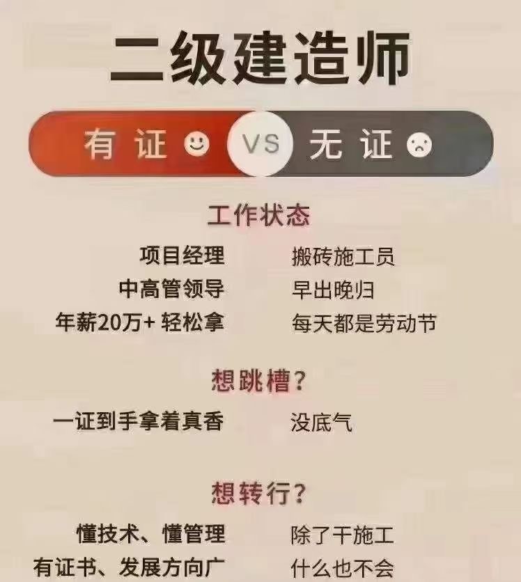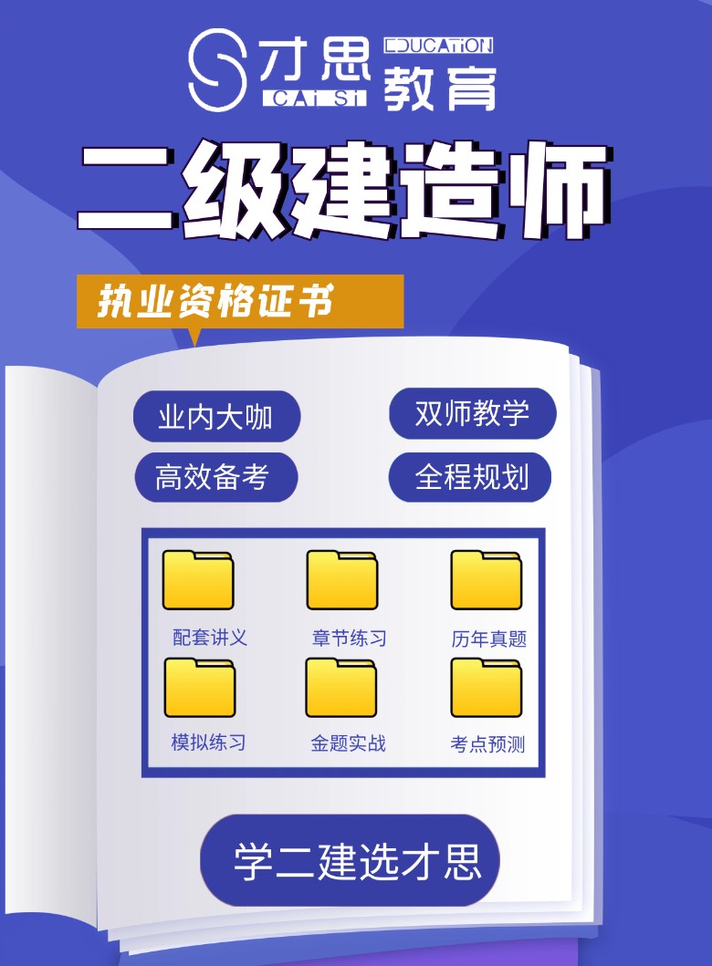 凡遵守国家法律、法规并符合下列条件之一的,可报名参加考试。(一)考全科1.具备工程类或工程经济类中专及以上学历并从事建设工程项目施工管理工作满2年;2.具备其他专业中专及以上学历并从事建设工程项目施工管理工作满5年;3.从事建设工程项目施工管理工作满15年。(【考试科目及作答方式】(一)考试科目。考试设《建设工程施工管理》、《建设工程法规及相关知识》和《专业工程管理与实务》3个科目,其中《建设工程施工管理》和《建设工程法规及相关知识》科目试题为客观题;《专业工程管理与实务》科目设置建筑工程、公路工程、水利水电工程、市政公用工程、矿业工程和机电工程等6个专业,试题由主观题和客观题组成。(二)作答方式。1. 纸笔模式。客观题用2B铅笔在答题卡上作答,主观题用黑色墨水笔在答题纸(专用答题卡)上作答。2. 机考模式。在电子计算机设备上作答客观题和主观题。【管理办法】二级建造师资格考试成绩实行滚动管理,参加全部3个科目考试(级别为考全科)的人员须在连续2个考试年度内通过全部应试科目,参加2个科目考试(级别为免一科)的人员须在1个考试年度内通过相应应试科目,参加1个科目考试(级别为免二科)的人员须在1个考试年度内通过相应应试科目,方可获得职业资格证书;参加1个科目考试(级别为增报专业)的人员须取得二级建造师资格证书后方可报名,通过应试科目后方可获得成绩证明。【考试费事宜】二级建造师执业资格考试《建设工程施工管理》和《建设工程法规及相关知识》科目按每人每科60元标准收取考务费,《专业工程管理与实务》科目按每人120元标准收取考务费,报名费按每人10元标准收取。机考模式与纸笔考试模式收费相同。【考试时间】 每年6月考试【培训优势】1、苏州本土连锁教育培训机构,学习有保障。2、课程体系完善:分为入门导学、基础精讲、习题练习、真题解析、考前冲刺。3、师资力量强:行业内金牌老师授课,学术派与实战派组合且拥有相关考试证书。4、智能题库完整:章节练习、模拟题练习、真题练习、冲刺题模考。5、全程督学:入学后专职班主任持续跟进学习,配备助教老师进行答疑。6、证书推荐:取得证书后推荐证书使用。 咨询老师:江老师咨询电话:19941905958<同微信>咨询地址:昆山玉山镇九方城市花园9栋3楼——才思教育
