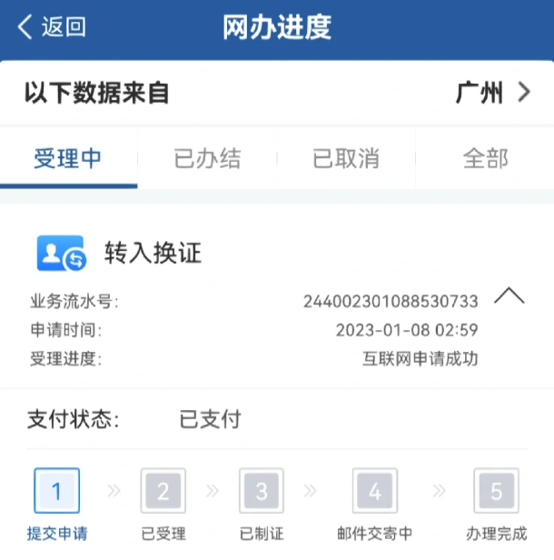 办理完毕后,我们可以返回APP首页,在底部进入【网办进度】,查看新驾驶证的办理进度。