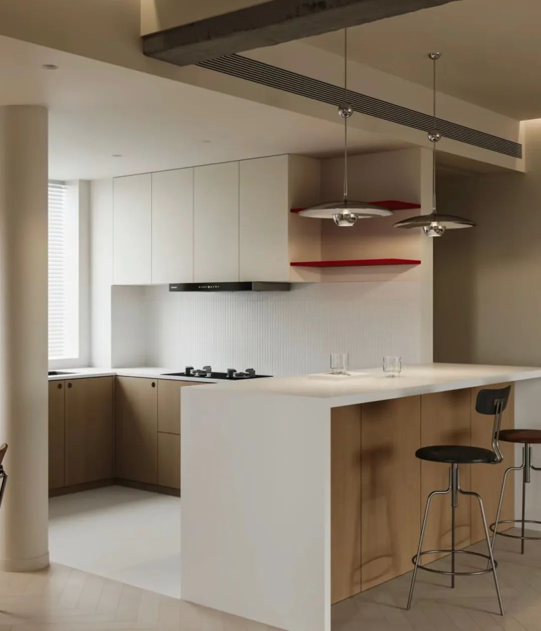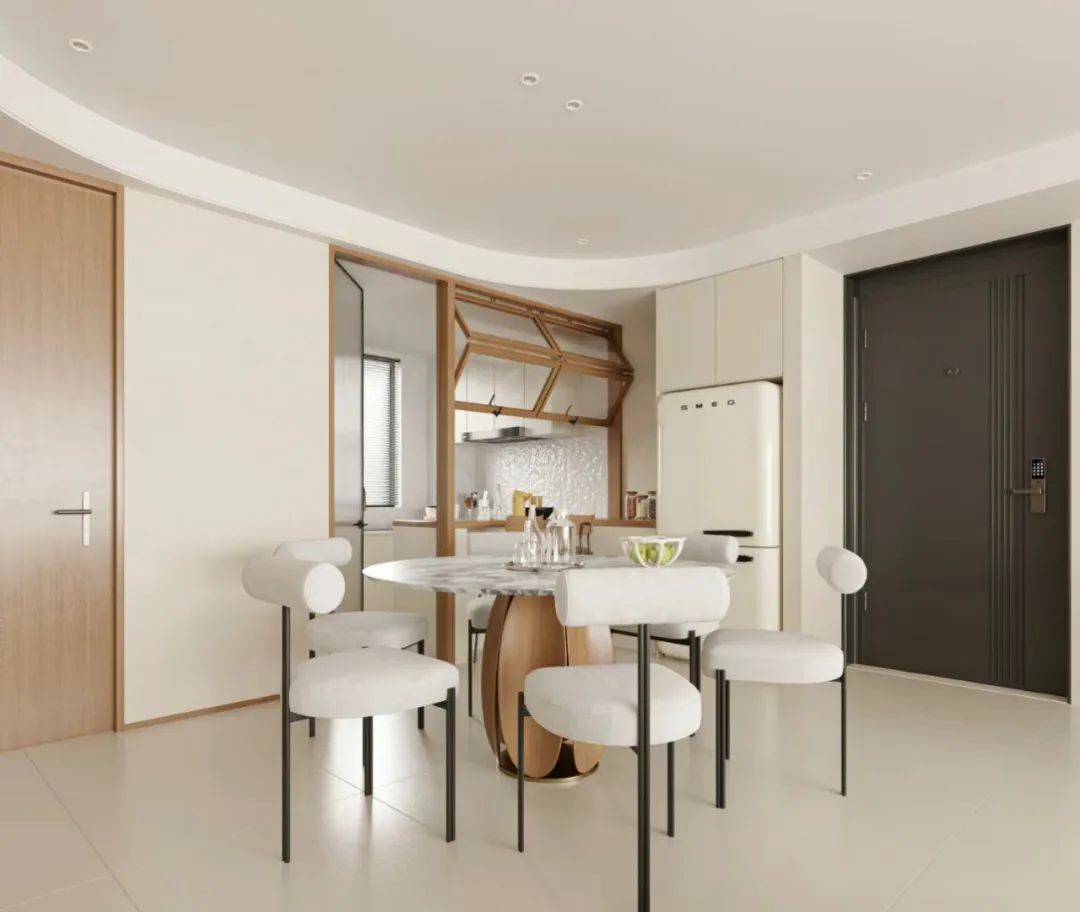 中岛让厨房动线更流畅,传菜或搁置碗筷都不用跨进厨房,通过岛台即可。此外,即使是做饭也可以和家人朋友保持密切的交流沟通,不会显得沉闷。