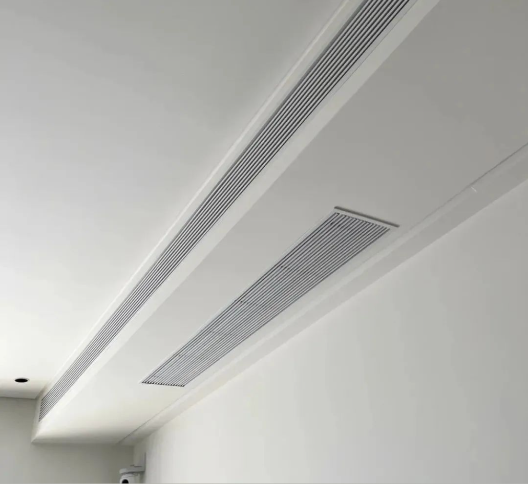 不同的空间需要有不同的设计选择:客厅中央空调出风口,拉长做到底,视觉上让客厅更开阔;在卧室安装智能出风口,自动检测人体避开对着吹风;书房选用进出口一体式出风口,合理运用吊顶空间。