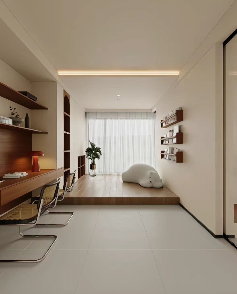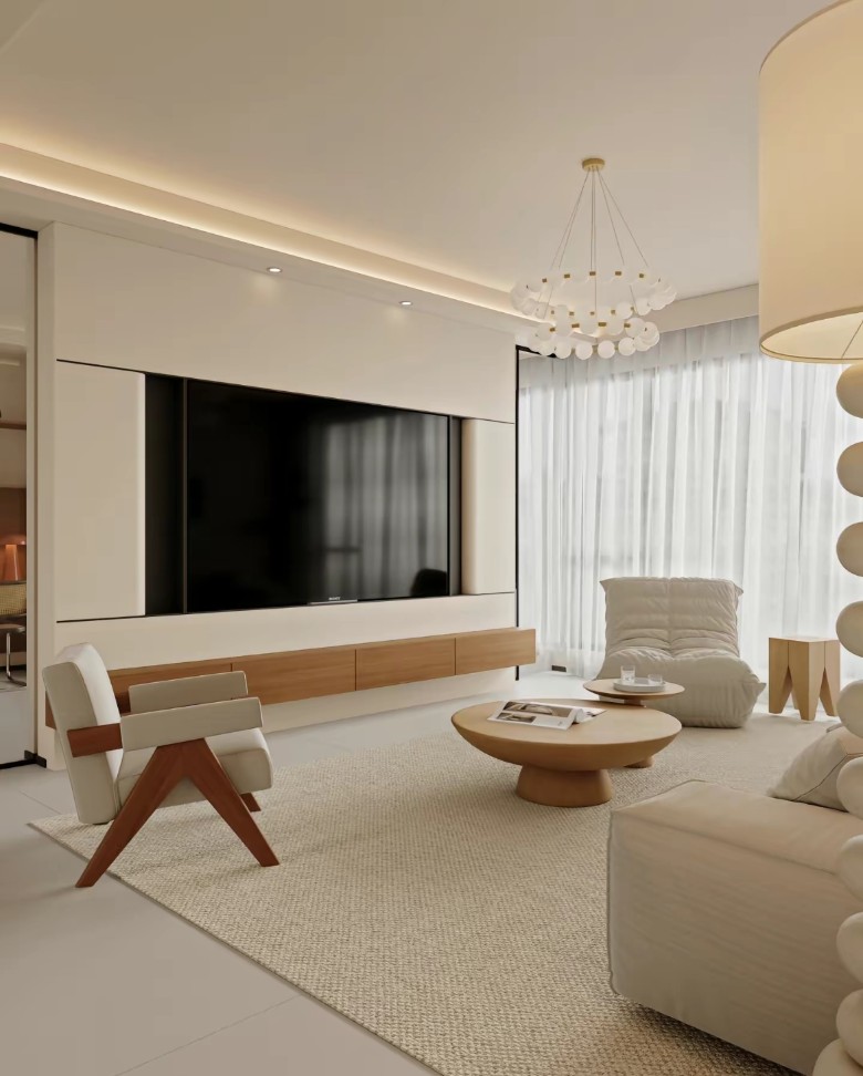 原木色的氛围和软软糯糯的的沙发和谐交融,