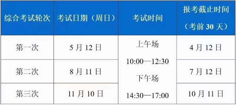 ⚠考试时间:每年的5月和8月和11月第三周周六