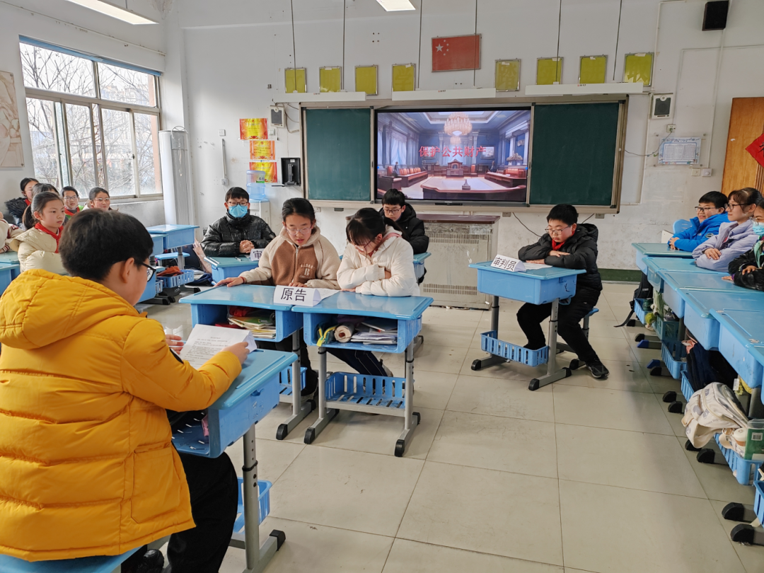 昆山开发区晨曦小学组织高年级学生开展模拟法庭辩论赛,根据不同的典型案事例进行模拟法庭,赛前让学生寻找相关法律法规,为辩论赛做好充足准备。