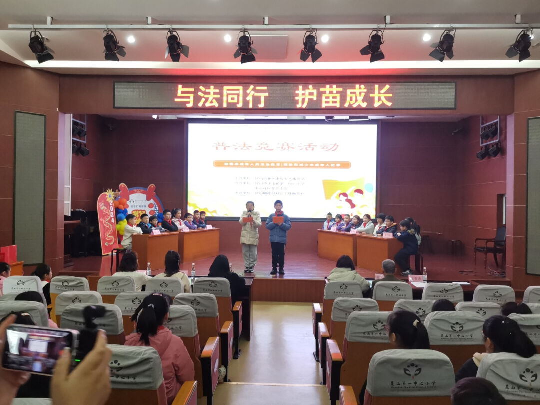 昆山市玉山镇第一中心小学举办普法竞赛活动,通过答题PK的形式加深学生对未成年人保护法、家庭教育促进法、预防未成年人犯罪法的认识。