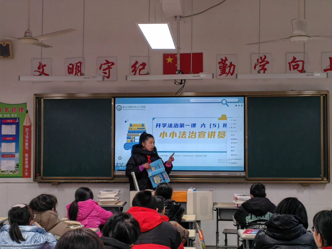 昆山市周市中心小学校组织开展“小小法治宣传员”活动,鼓励学生通过宣讲的形式讲述身边真实发生的法治故事。