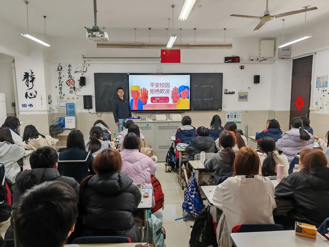昆山花桥国际商务城中等专业学校的法治副校长则以“平安校园 拒绝欺凌”为主题,让学生通过聆听法治讲座、观看普法视频,提升防范欺凌的意识。