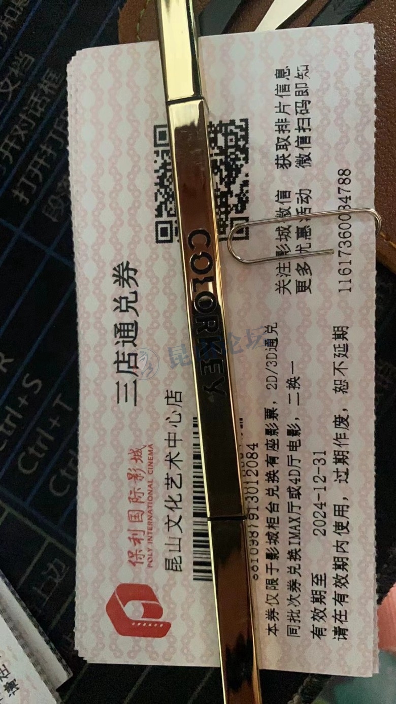 昆山保利影城电影票兑换券城西文化艺术中心/百盛/张浦三店通用使用说明:凭一张券可至电影院柜台兑换一张电影票,可以选座位,但是看张浦巨幕和城西店的IMAX或者4D电影需使用两张券兑换一张票。零卖25元一张,10张以上20元一张。库存不多,预购从速,可以使用至今年年底。注意:仅限柜台兑换订座使用,不支持网上提前订座位。兑换券有效期:至2024年12月31日。关于邮费:一次购买5张及以上可以包邮,低于5张运费8元,也可以来千灯自提。不常上论坛,有需要私信或者留言联系方式,也可以加我vx 4212818。