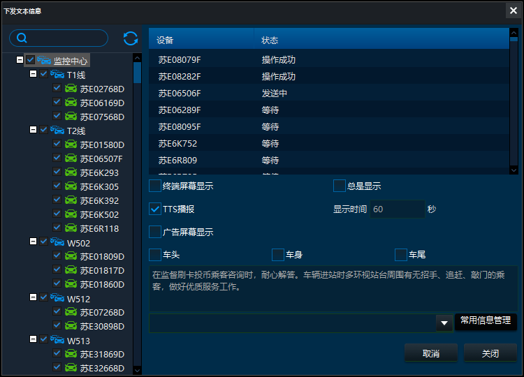 密切关注气象信息,充分利用GPS短信、微信、安全提示板等方式,累计发送安全提示信息177条。
