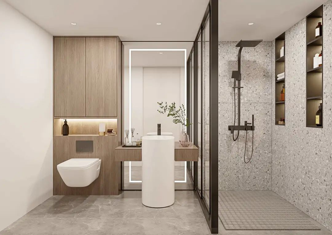 2.小空间卫生间选择素色瓷砖,避免花哨砖显得更小。