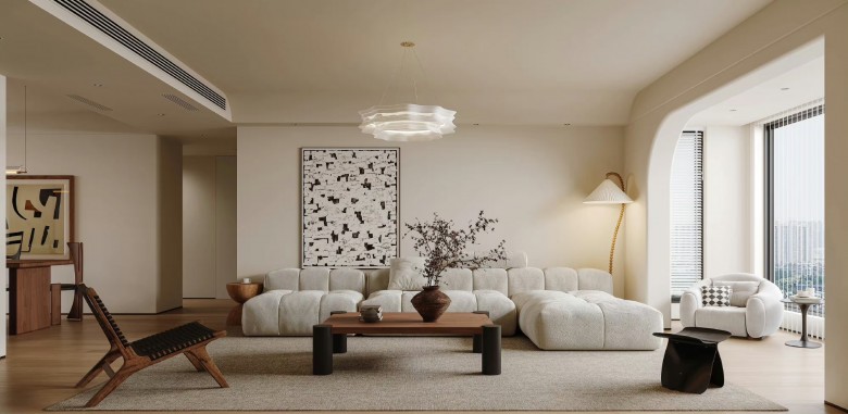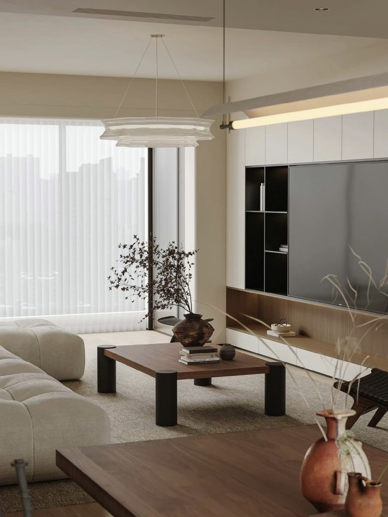 原木+现代复古的结合,舒适随性的设计风格,很特别很养眼