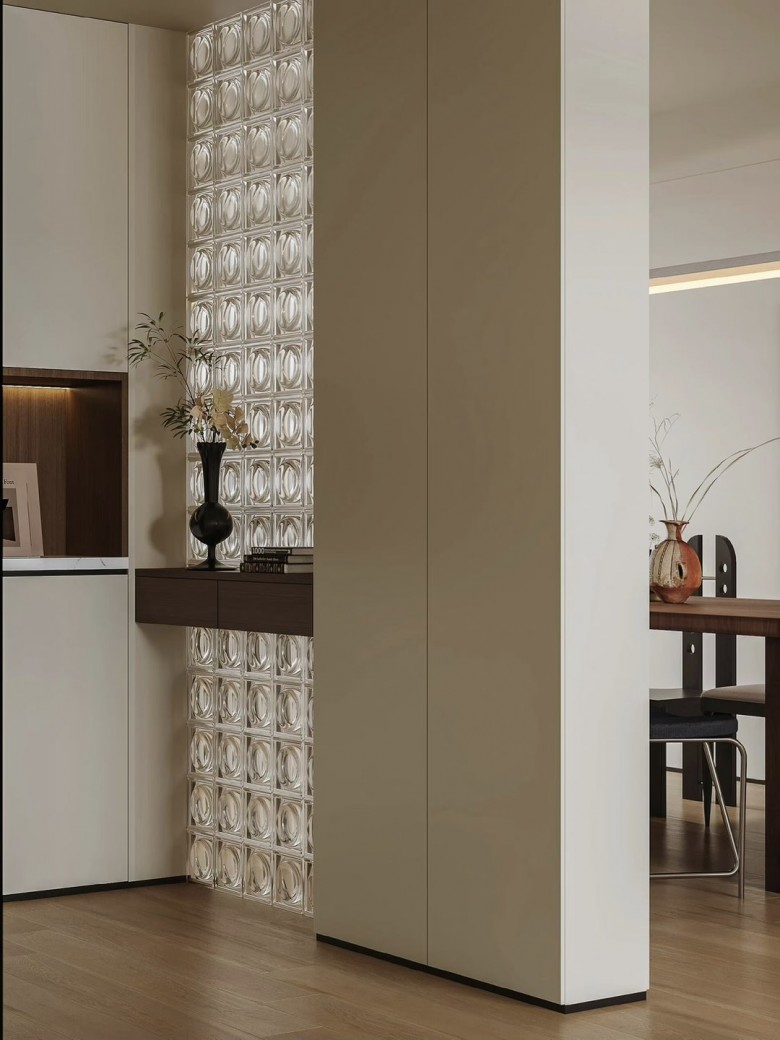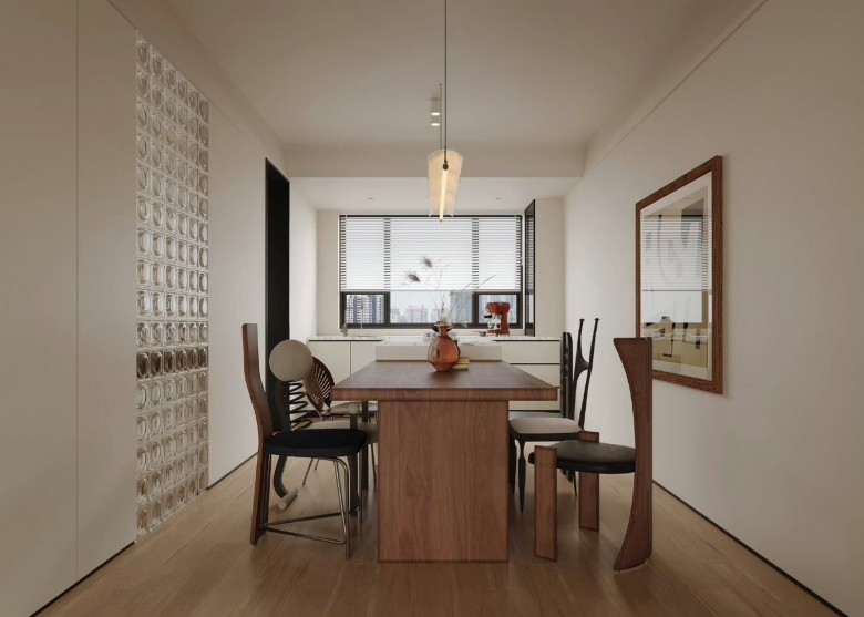 整个家里配色很统一,极简白色融入胡桃木色,温润又很有质感。