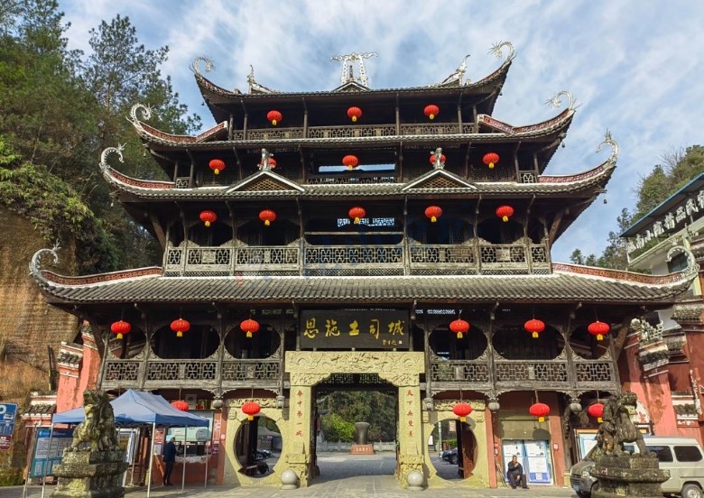 kt9C 土司城,始建于元代,历经元明清三朝,建筑雄伟、风格独特,是世界上规模最大的土家族建筑群,素有“湖北小故宫”之美誉。
