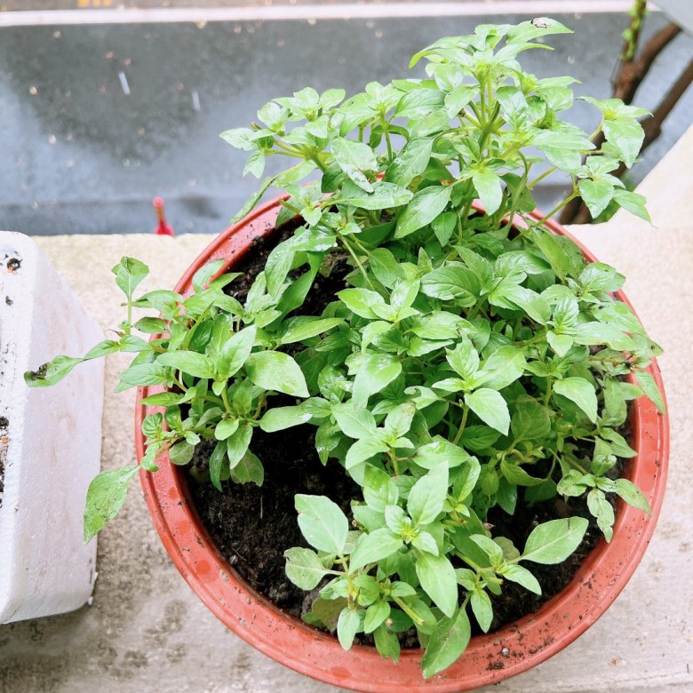 买带根的荆芥,叶子吃掉,把根留下种在盆里,特别好养活,每天浇水就行,10天左右就能掐叶子吃了,有种清凉的味道,叶子比较嫩我感觉比薄荷或者香菜好吃,拌凉拌菜特别好。