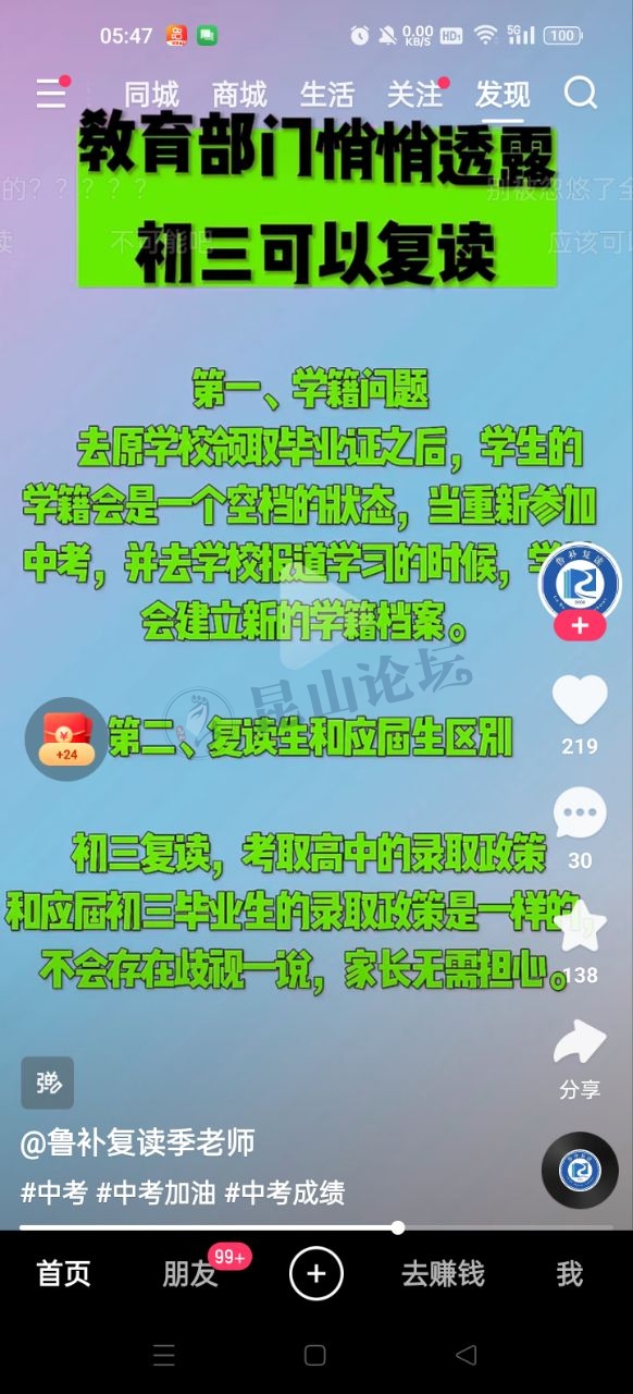 没有昆山户籍的初中毕业生是不得复读的,外地人在昆山中考只有一次机会[ 此帖被deseng1314在2024-06-30 17:09重新编辑 ]