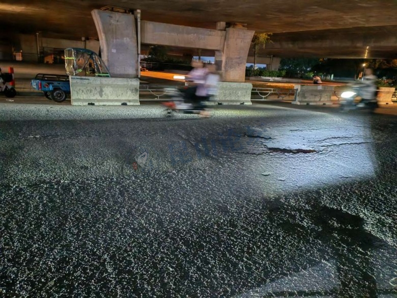 陆家南江路尽头,元丰大道高架下面道路损失严重,请及时修补!梅雨季节到现在了,出行不方便,望相关部门处理!