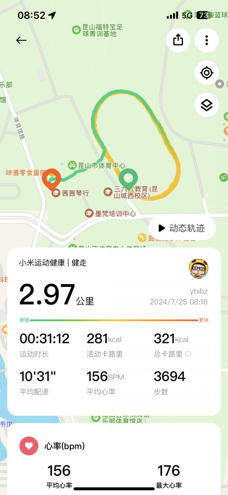 5点半开跑,最后两公里下雨了(还不小),想着反正回家要洗澡,就冒雨跑了,标准落汤鸡 (2024-07-25 09:22)