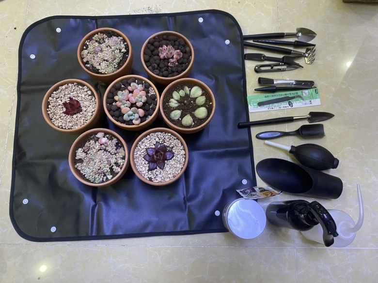 晚上要我和她一起种肉肉。就陪她玩玩吧,在客厅摊开场地,买的还很齐全,营养土,陶土,小石子,生根水,喷壶还有种花小农具,孩子一边种一边还在说,等肉肉养活了拍照片给领导看看,让那老头羡慕嫉妒去吧,哈哈哈,我心想能活吗,熊童子买回家就叶子掉完啦,孩子胖呼呼的手捧着胖嘟嘟的熊童子叶子,心疼的要紧,我安慰她把叶子铺在土上,会发芽的,嘿嘿,先哄一阵子别让她过早失望了。