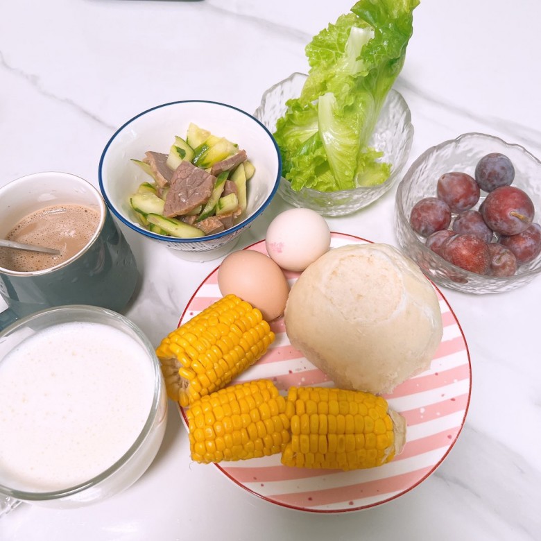 今早娃的早餐10分钟搞定,牛肉饼换了鸡排被娃嫌弃了一下还是吃完了。