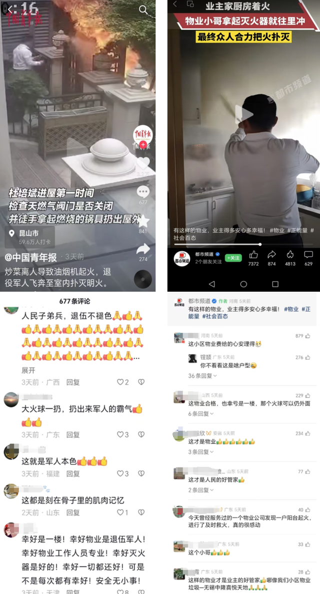 “如果今天没有物业及时地处理,我估计家里都要烧完了,他毫不犹豫地冲进去,手都烫伤了,真的是非常感激他们,火势控制了之后物业还安排了工程师傅们来帮我检查线路善后,直到隐患全部排除后才离开。”业主在事后感激地说道,“真正的英雄就在我们身边。”