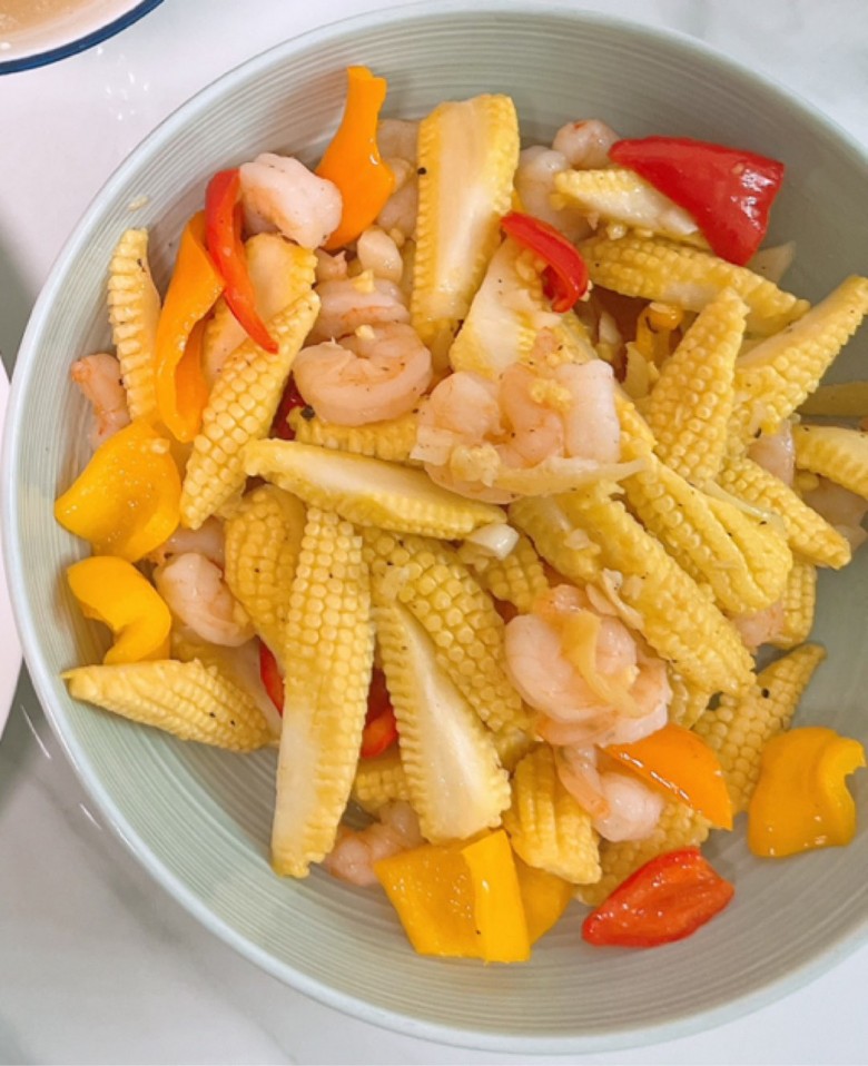 今晚我炒的玉米笋虾仁,也算是做饭了