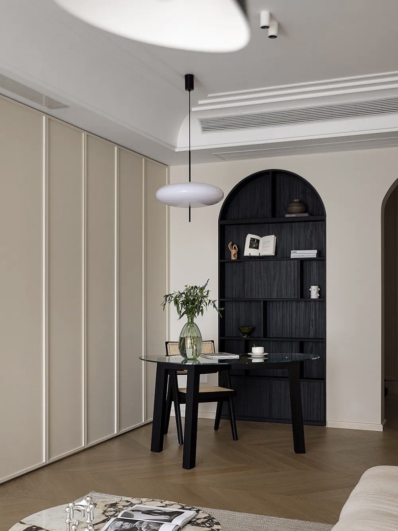 客厅艺术气息浓郁的法式石膏吊顶,给空间注入灵魂,极简黑白撞色美的很高级!