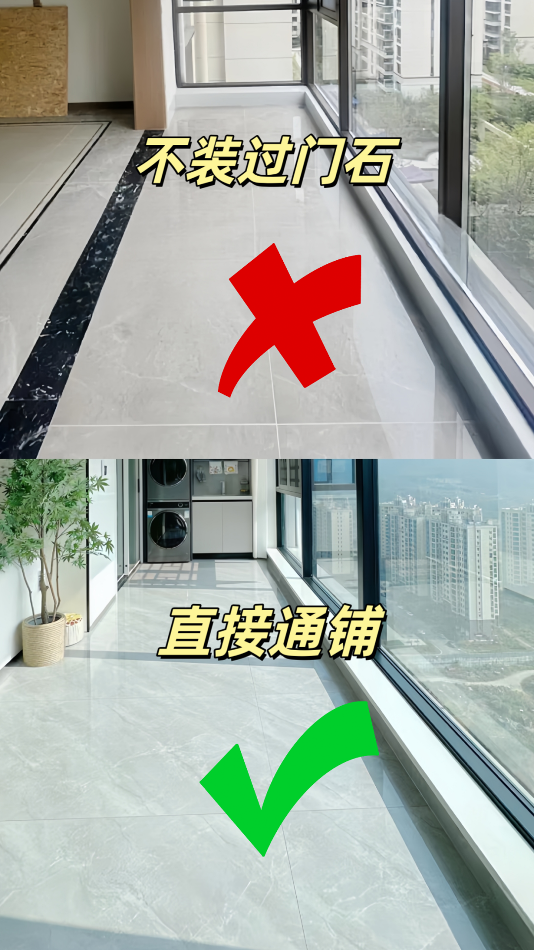 在阳台设计中,有些人会选择安装过门石,以区分室内外空间。然而,这种做法往往会导致空间的割裂,影响整体的流畅感。建议直接通铺地面,使用与室内相同的地砖或地板,这样不仅能够保持空间的统一性,而且空间延伸感好,整体显大气又高级。