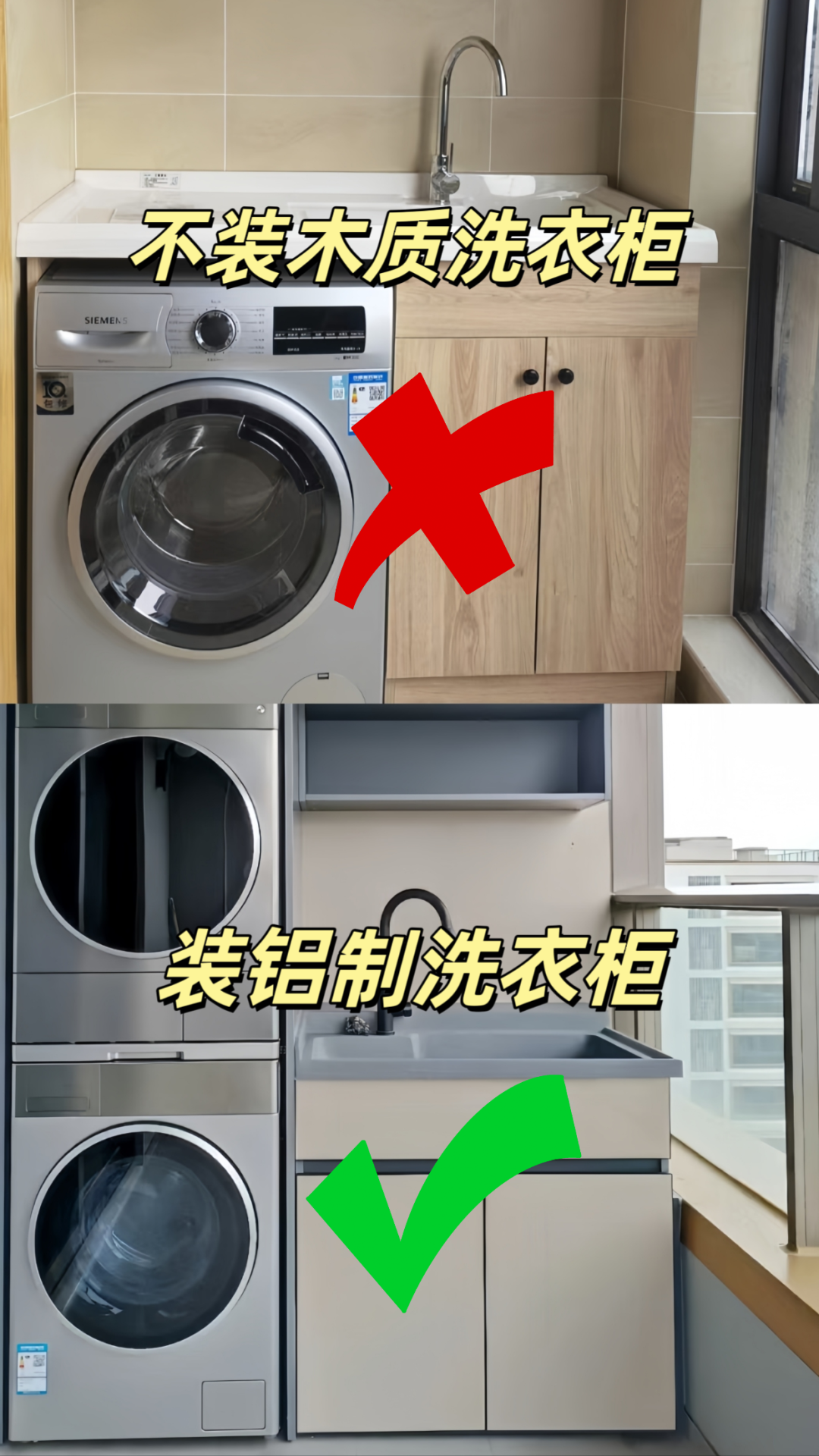 木质洗衣柜虽然质感温馨,但容易受潮变形,而铝制洗衣柜具有较好的耐腐蚀性和耐用性,适合阳台这种多水环境。