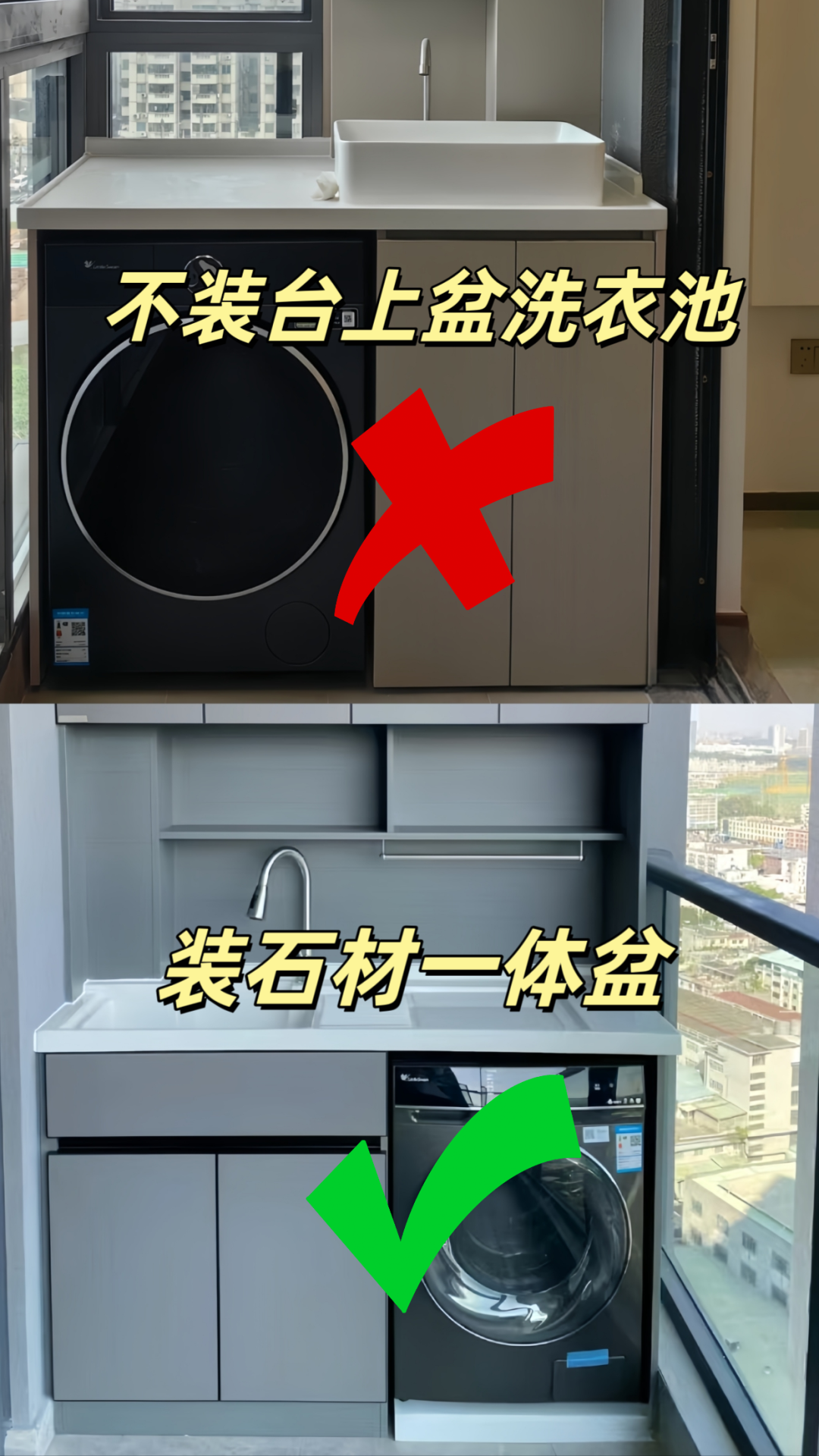 台上盆洗衣池虽然安装方便,但容易积水。石材一体盆不仅美观大方,且易于清洁、不易积水。此外,石材一体盆的耐用性也更强。