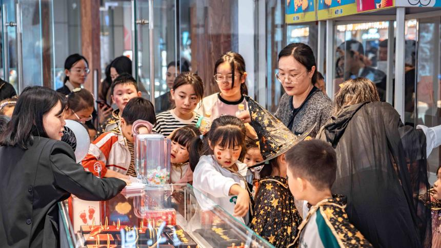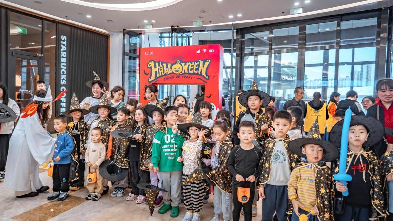 国庆假期尾声,购物中心又紧接着启动了亲子讨糖巡游活动。小朋友们身着各式各样的万圣节装扮,手持南瓜篮,在家长的陪伴下穿梭于商场各个角落,收集甜蜜的糖果,提前感受到了节日的欢乐气氛。