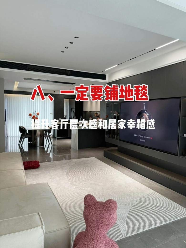8、一定要铺地毯,可以提升客厅层次感和居家幸福感。