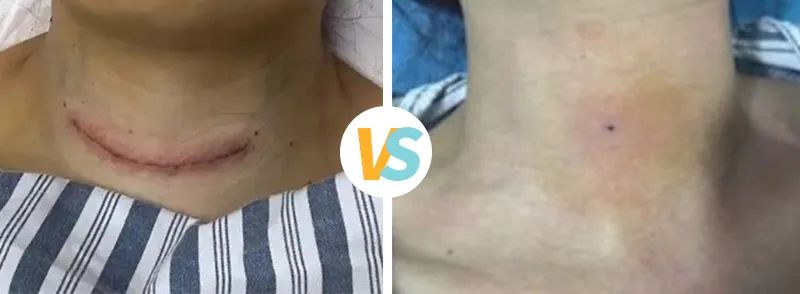 只用做小切口置入治疗针,术后不缝合,愈合后痕迹基本隐形。
